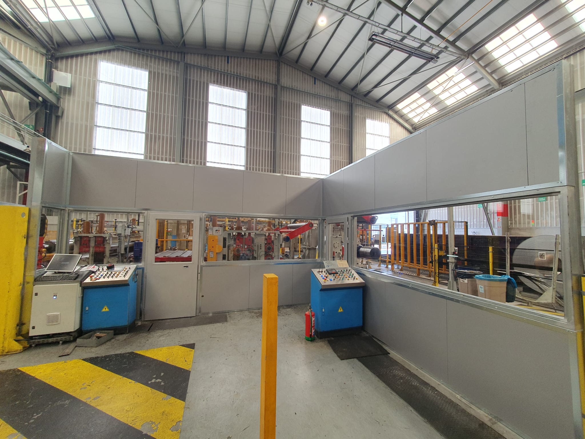 Esta obra se centró en la sustitución del antiguo cerramiento de la maquinaria por una pantalla acústica nueva. La nueva solución se diseñó en tres tramos verticales. El tramo intermedio, elaborado con metacrilato, permite un control visual constante de la línea de producción. Además, esta solución no compromete la eficacia del cerramiento en la reducción del ruido.
