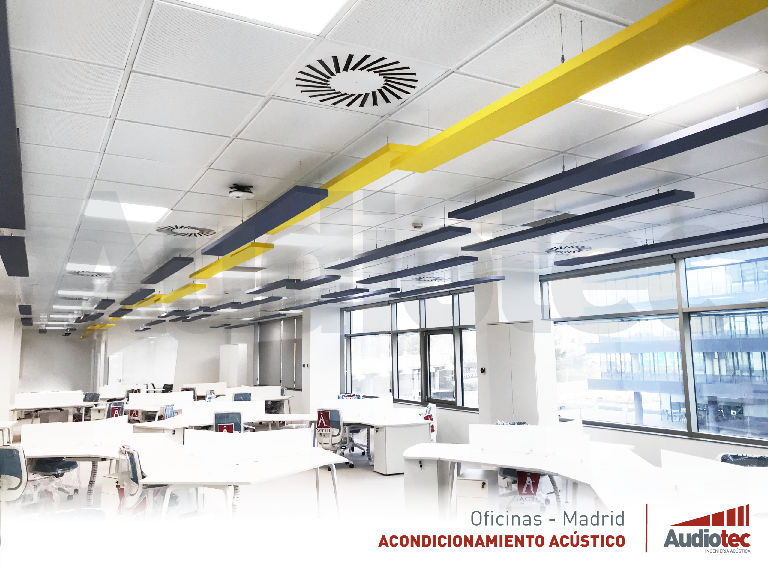 En este proyecto, presentamos la remodelación de oficinas que ha llevado a cabo una empresa de Madrid, donde realizamos el diseño del acondicionamiento acústico, mediante nuestra serie de islas acústicas. Este tipo de solución es muy estética y proporciona una alta absorción acústica. A su vez, es de fácil instalación y tiene una amplia gama tanto en formas como colores. En consecuencia, permite el diseño y personalización a medida de los espacios donde la concentración, la salud y el bienestar de las personas es imprescindible, haciéndolos únicos, saludables y sin ruidos.