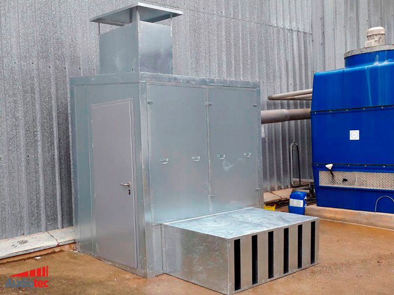 Para la ventilación del espacio interior se les acopla un sistema de silenciadores de bafles paralelos, que permiten la entrada y salida de aire, atenuando el ruido procedente del interior del encapsulado.
