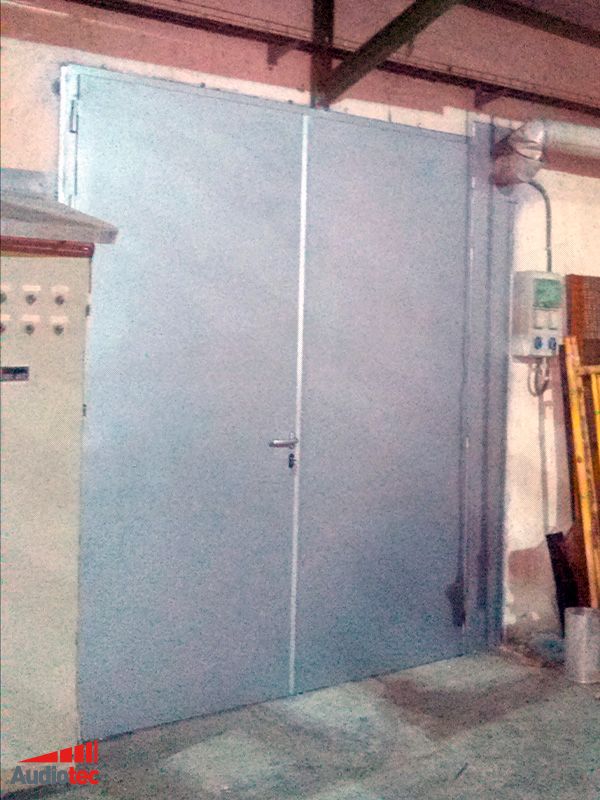 Las puertas acústicas de metal DOORTEC de AUDIOTEC están formadas por un marco tubular de acero y una hoja o dos hojas rellenas con un núcleo de componentes fonoaislantes y fonoabsorbentes.