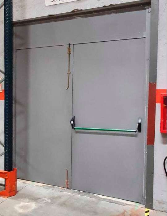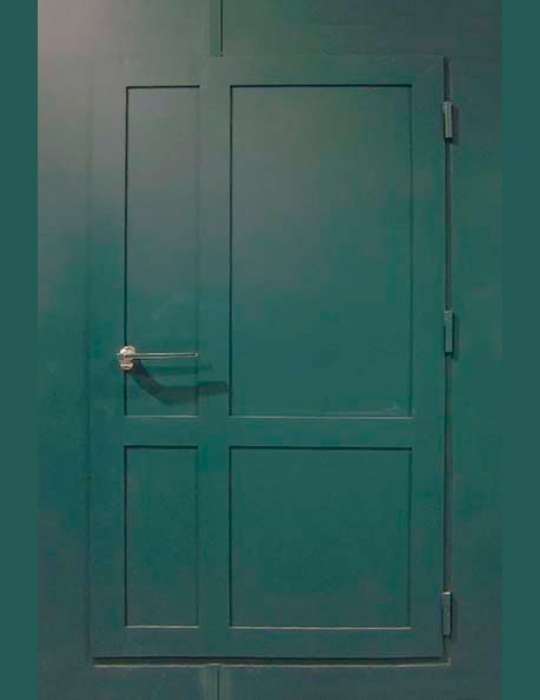 Las puertas metálicas acústicas están formadas por un marco tubular de acero, de una hoja o dos hojas rellenas con un núcleo de componentes fonoaislantes y fonoabsorbentes.