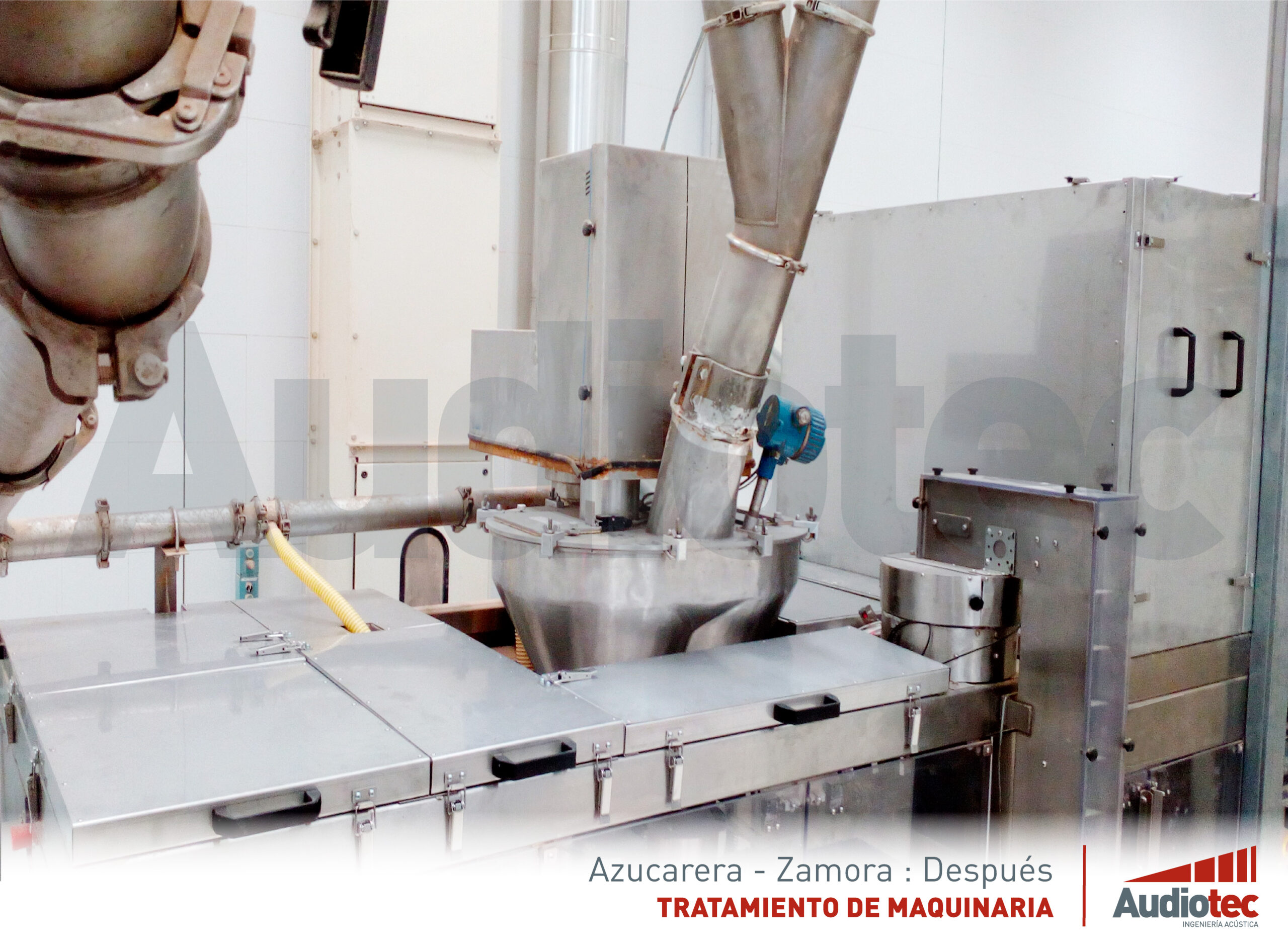 En esta azucarera situada en la provincia de Zamora, hemos llevado a cabo el análisis de una de sus máquinas de envasado. Tras ello hemos podido comprobar que el ruido que estaba transmitiendo provenía de la parte tanto superior, donde se sitúa la tolva, como la parte inferior, donde se encuentran los motores. En consecuencia el espacio donde está ubicada se ve afectado por las emisiones sonoras. Por lo que las molestias a los trabajadores están garantizadas.